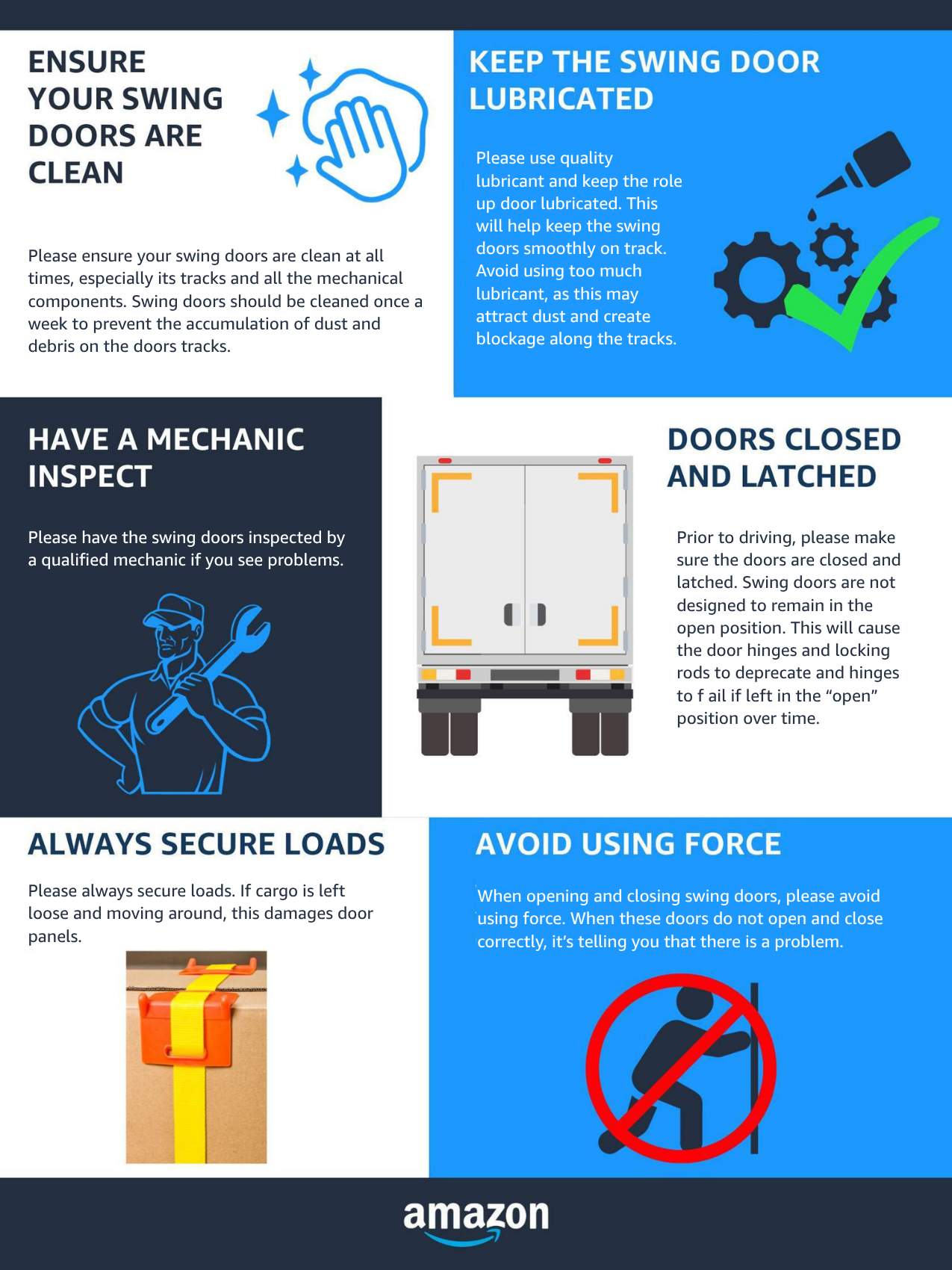 Swing doors, are designed to maximize the net cargo area of trailers. Swing doors also provide additional reinforcement to the frame of a trailer vs. roll-up doors.